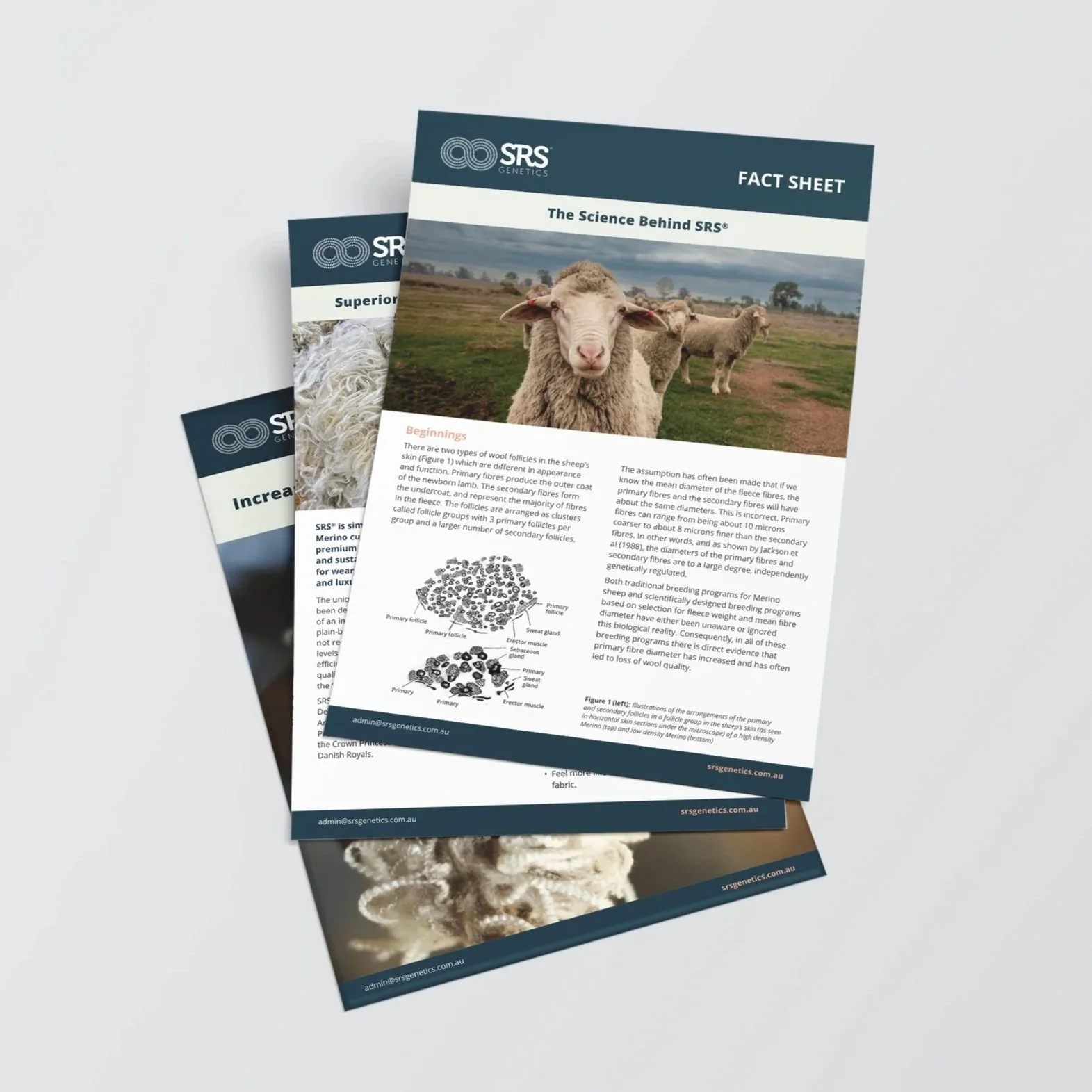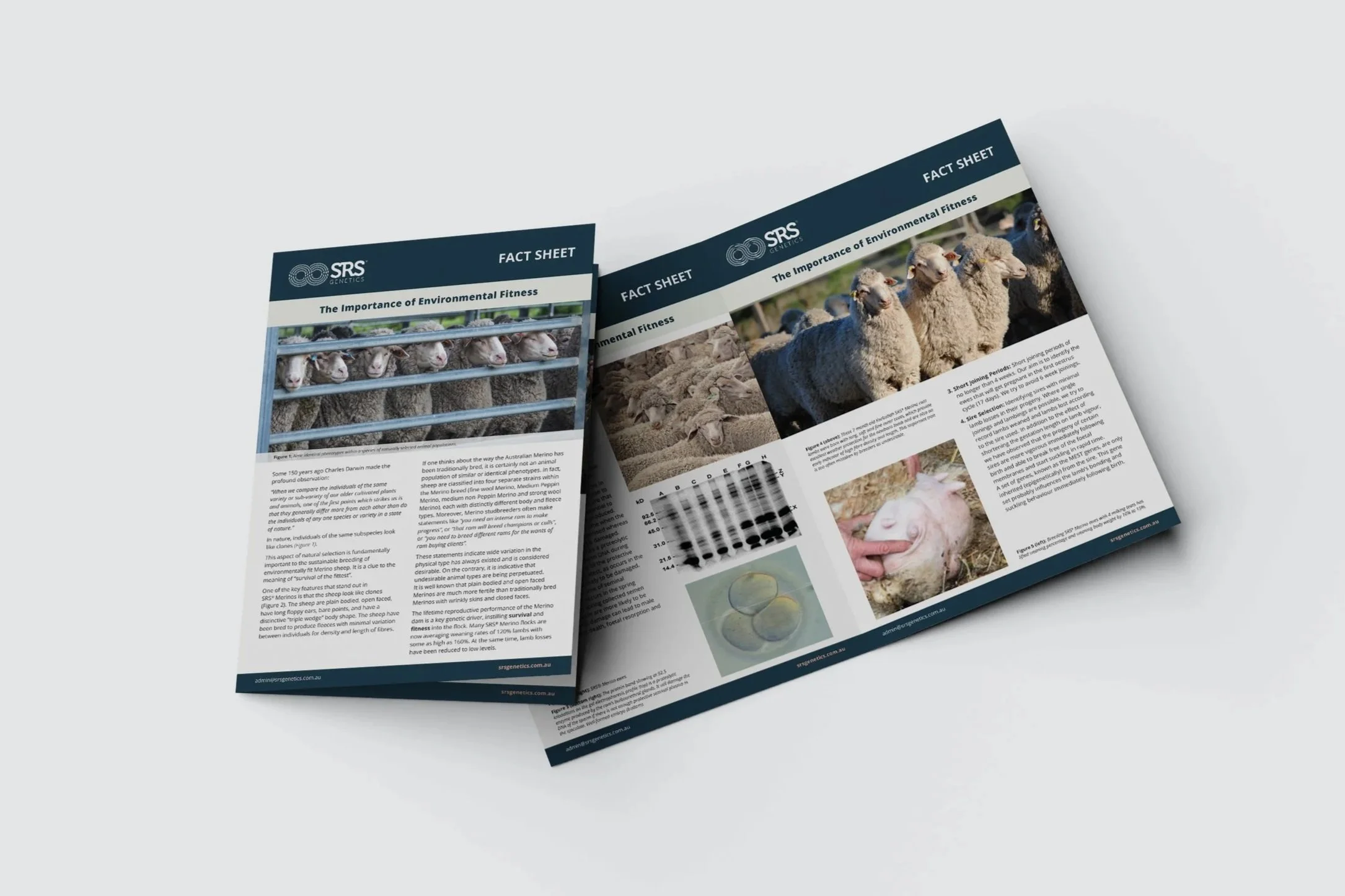 SRS Genetics engaged Kristy Harris Graphic Design to refresh their fact sheet collateral. The client retained an established logo, and the project brief focused on aligning the fact sheets with updated brand styling developed by Kristy Harris Graphic Design. Key updates included adoption of revised brand colours and refreshed typographic treatments to create a consistent, contemporary look across all materials.